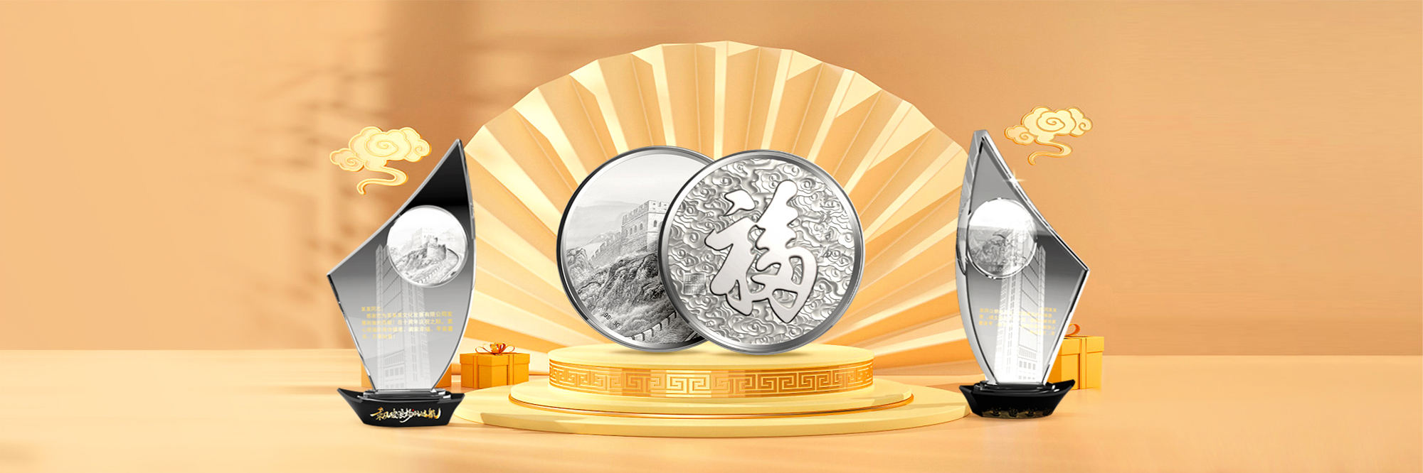 專為企事政類的客戶一站式金銀制品定制解決方案:周年慶典,公司年會,開業上市,學校團體,商務饋贈,優秀員工獎勵表彰,部隊優秀士兵獎勵,抗戰老兵緬懷,感恩回饋,等多種場合定做,公司擁有自己的開模師、工藝師,生產工廠,告知我們要求最快當天可出稿大大縮短周期,金銀料價格按照當天上海黃金交易所公布為準,杜絕中間商加價。